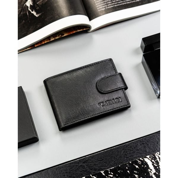 Duży portfel męski ze skóry naturalnej w czarnym kolorze zamykany zatrzaskiem - 4U Cavaldi