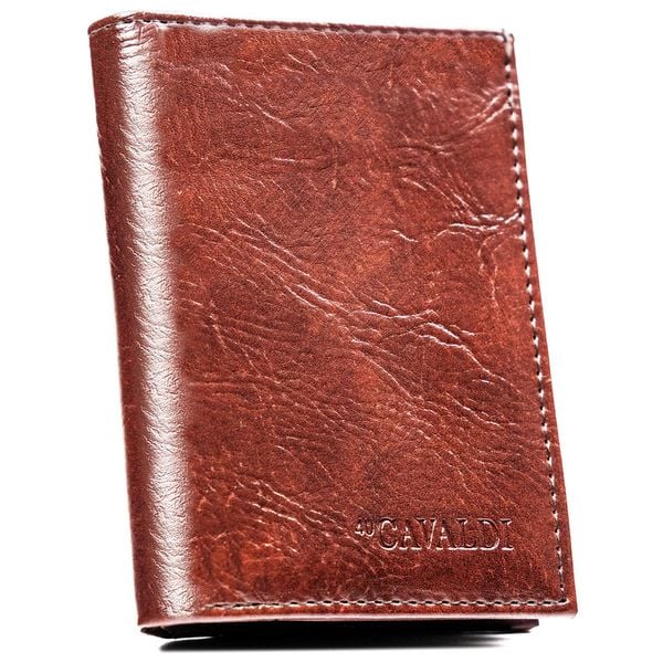 Brązowy portfel męski ze skóry ekologicznej bez zapięcia zewnętrznego - 4U Cavaldi