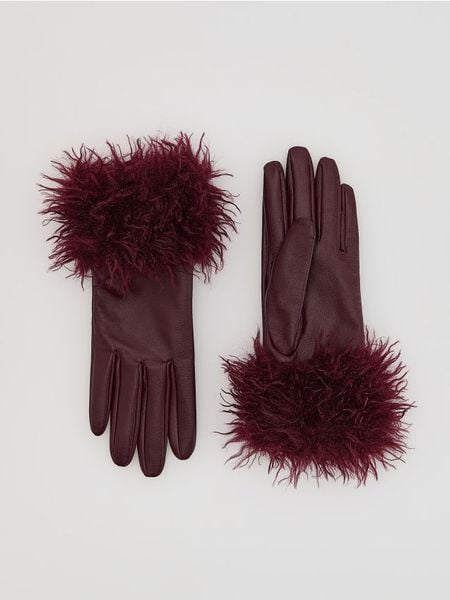Skórzane rękawiczki z futerkiem – mahoniowy