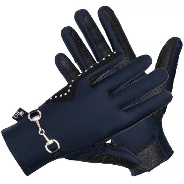 Eleganckie, bardzo elastyczne oraz wygodne rękawiczki wykonane z materiału lycra z naszyciami z miękkiej skóry naturalnej. Ozdobione metalowym wędzidłem oraz rzędem złotych cyrkonii na małym palcu. Ocena: Tags: Sporty Jeździectwo Wyposażenie jeźdźca Rękawiczki jeździeckie Kolor: Czarny, Niebieski Rozmiar: Przeznaczenie: female Marka: EQUESTRIAN QUEEN
