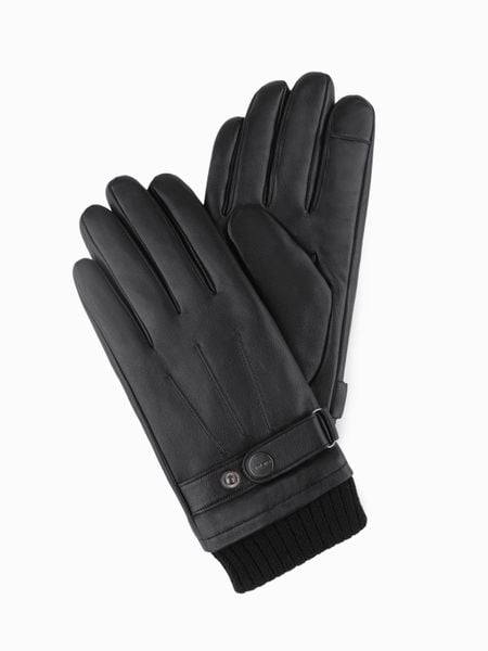 Skórzane męskie rękawiczki męskie z funkcją dotykową – czarne V1 – Rozmiar: M