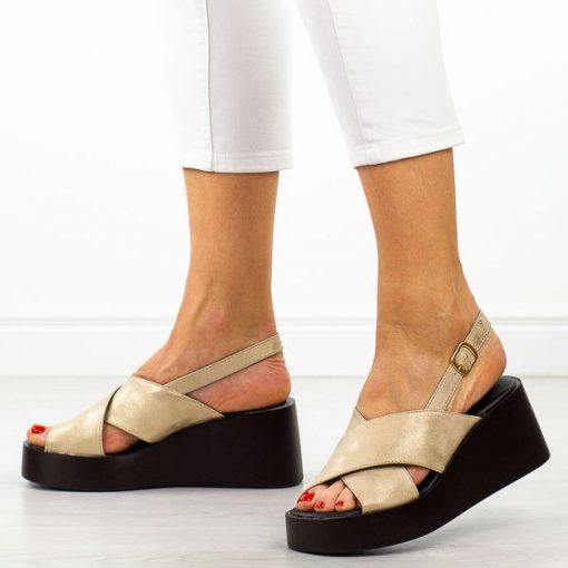 Złote sandały damskie na platformie M.Daszyński 24130-4