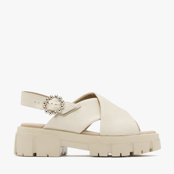 Kremowe sandały z ozdobną klamrą
