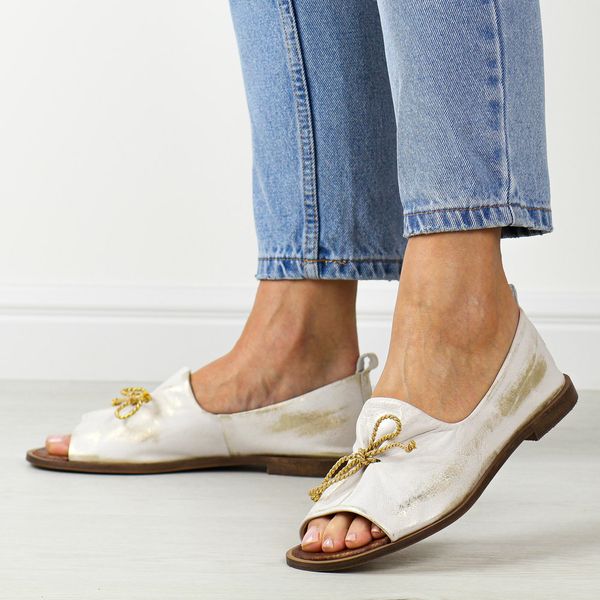 Złote przecierane skórzane Polskie sandały damskie z zakrytą piętą Deoni D488d