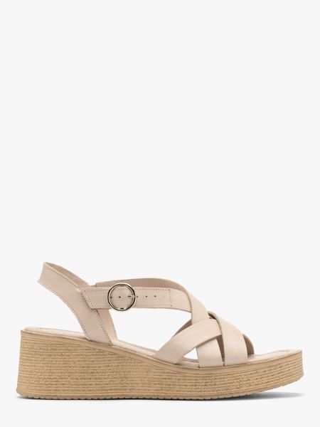 Beżowe sandały z paseczków na koturnie z linii RYŁKO RELAX.Model wykonany ze skóry licowej.Podszewka i wyściółka skórzana.Ozdobny klin + platforma o wysokości 6 cm.But posiada ozdobną klamerkę w kolorze złota. Dystrybutor: Brawo Sp. z o.o. ul. Dworcowa 19, 34-130 Kalwaria Zebrzydowska; [email protected] pochodzenia: POLSKA