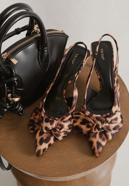 Panterkowe Sandały Vices na Szpilce Bez Pięty z Kokardą Niliswena