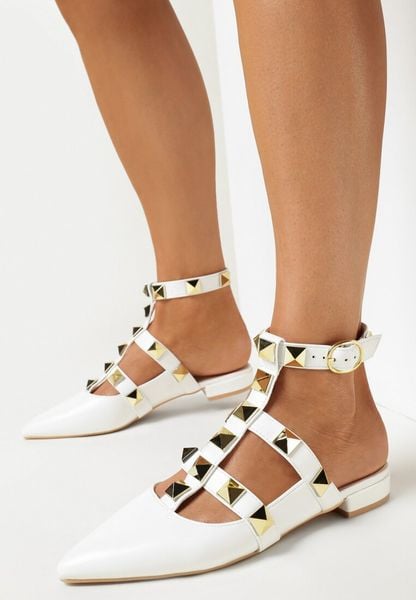 Białe Sandały z Noskiem w Szpic Ozdobione Ćwiekami Viasara
