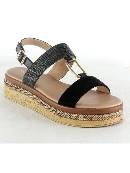 – zapięcie: sprzączka- noski: otwarte- obcas: koturny z platformą z przodu- podeszwa: antypoślizgowa