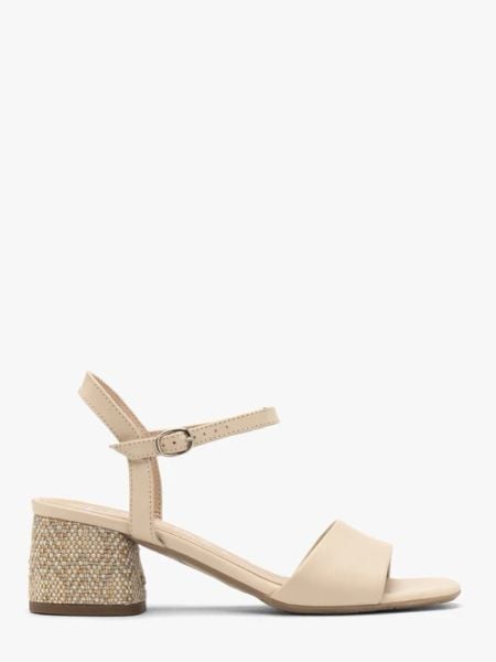 Beżowe sandały na dekoracyjnie obleczonym obcasie