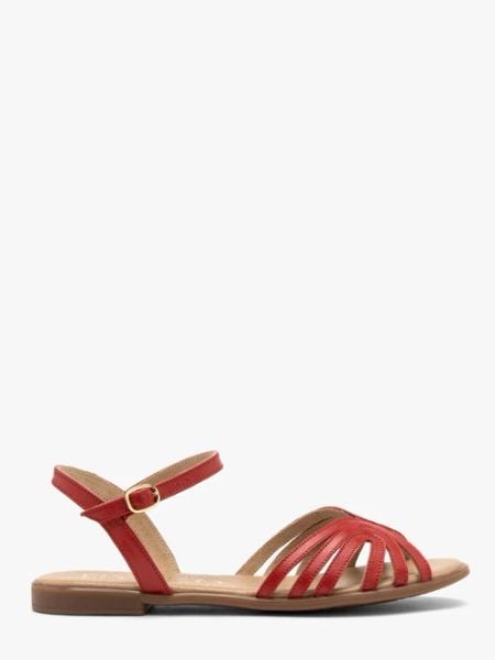 Płaskie Czerwone Sandały DamskiePłaskie sandały damskie w intensywnie czerwonym kolorze to wyjątkowy dodatek do codziennych stylizacji. Zapewniają wygodę i doskonale uzupełniają zarówno casualowe, jak i eleganckie zestawienia. Zapięcie na sprzączkę umożliwia lepsze dopasowanie, a naturalna skóra sprawia, że są idealnym wyborem na ciepłe dni.