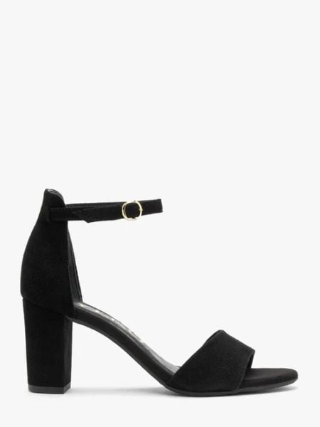 Czarne welurowe sandały na obcasie typu klocek