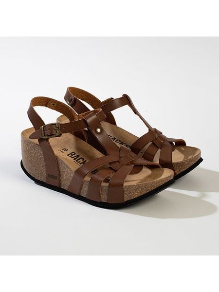 – materiał wierzchni ze skóry syntetycznej – zapięcie: sprzączka- noski: otwarte- skórzana wkładka: ergonomicznie formowana- forma obcasa: koturny – podeszwa: antypoślizgowa- wyprodukowano w Hiszpanii