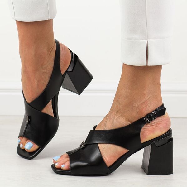 Czarne sandały damskie na słupku Vinceza 62111