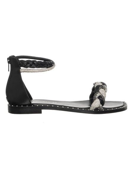 – materiał wierzchni ze skórzanymi wstawkami- zapięcie: suwak- noski: otwarte- detale: połyskujące elementy- skórzana wkładka: tak- podeszwa: antypoślizgowa- detale: błyszczące kamyczki