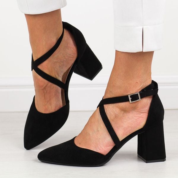 Czarne zamszowe sandały damskie na słupku z zakrytą pietą Sergio Leone Sk865
