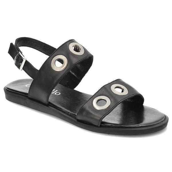 Sandały damskie Chebello, na płaskiej podeszwie zapinane sprzączką, czarne, 2038 Sandro 04
