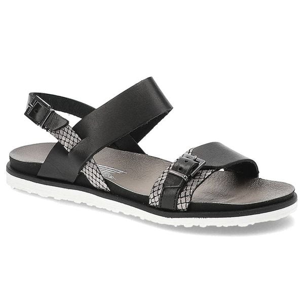 Sandały damskie Lemar, ze skóry licowej i na płaskiej podeszwie, czarne, 40105