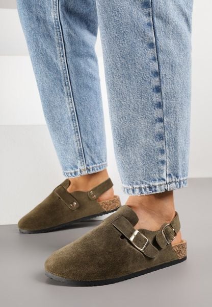 Zielone Sandały w Stylu Chodaków Ozdobione Klamrami Qyrraya