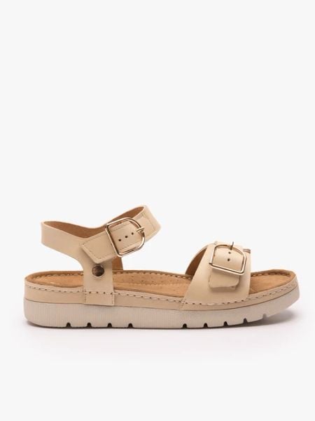 Beżowe sandały na grubszym spodzie z dwoma paskami