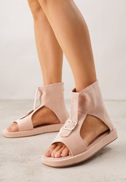 Różowe Sandały Typu Botki Ozdobione Metaliczną Klamrą z Przodu Adrasaia