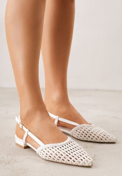 Białe Sandały na Płaskiej Podeszwie z Plecioną Cholewką i Paskiem na Piętę Telletia