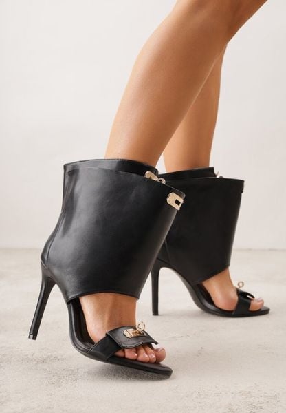 Czarne Sandały Typu Botki z Metalicznymi Klamrami Zaehlyss