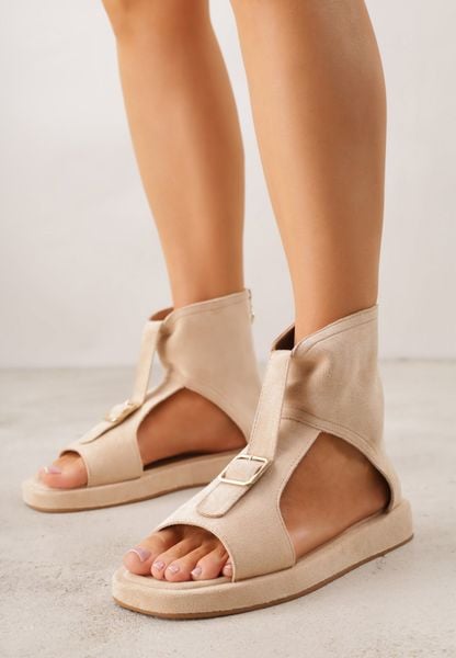 Beżowe Sandały w Stylu Botków z Ozdobną Klamrą Theaneasi