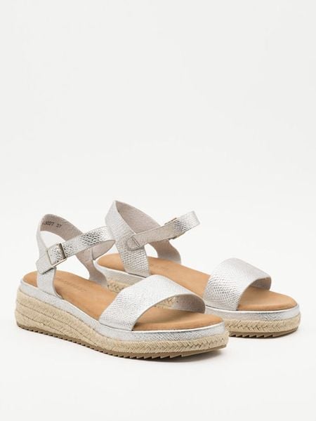 – zapięcie: sprzączka- noski: otwarte- powierzchnia: z metalicznym połyskiem- obcas: koturny z platformą z przodu- podeszwa: antypoślizgowa