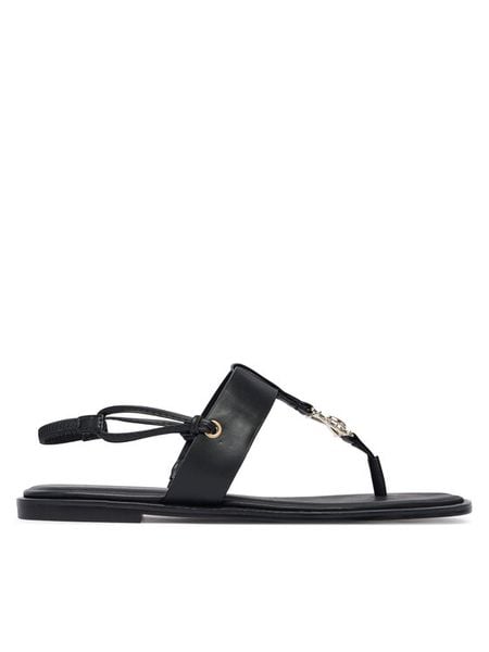Calvin Klein Sandały Round Flat Sndl Thong Lth Hdw HW0HW02926 Czarny