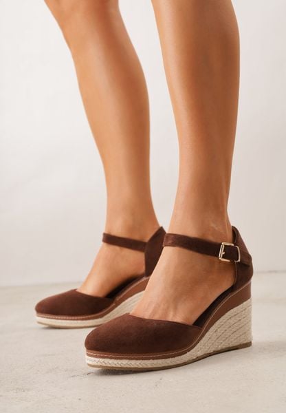 Brązowe Sandały na Koturnie z Plecionki i Zapięciem na Sprzączkę Jessaln