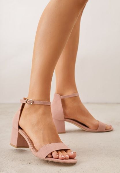Jasnoróżowe Basicowe Sandały na Słupku Vices z Paskiem Wokół Kostki Varhira
