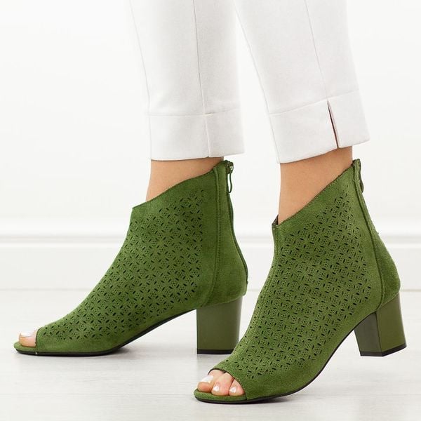 Zielone sandały damskie na obcasie z zakrytą piętą M.Daszyński 1954-23