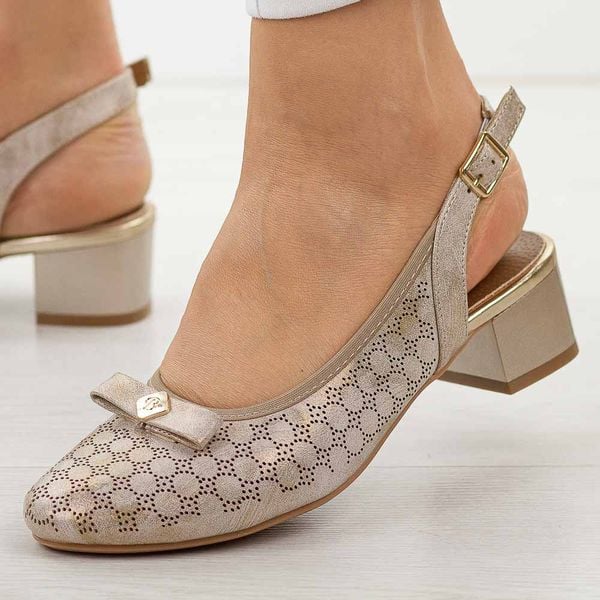 Złote sandały damskie na obcasie M.Daszyński Sa210-15