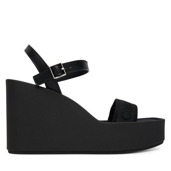 Sandały Calvin Klein Wedge 70 Sndl Webbing Lth HW0HW02882 Czarny