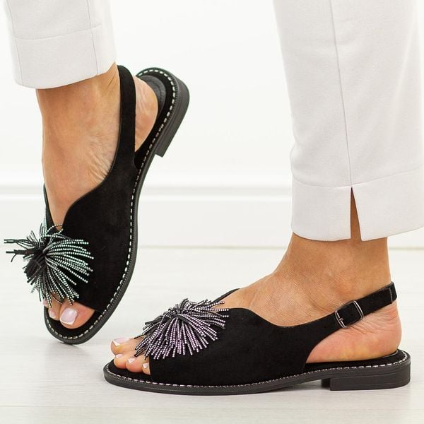 Czarne płaskie sandały damskie Potocki 43349