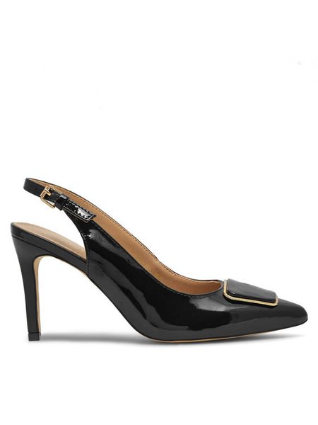Czarne Sandały Lakierowane VICES na Szpilce Slingback z Metaliczną Klamrą Harmonia