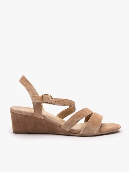 Jasnobrązowe Sandały na Koturnie z Marszczoną Cholewką i Metaliczną Aplikacją Teodlar