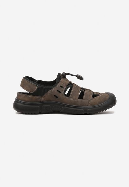 Brązowe Sandały Sportowe ze Skóry Naturalnej z Regulowaną Cholewką i Rzepem Acridana