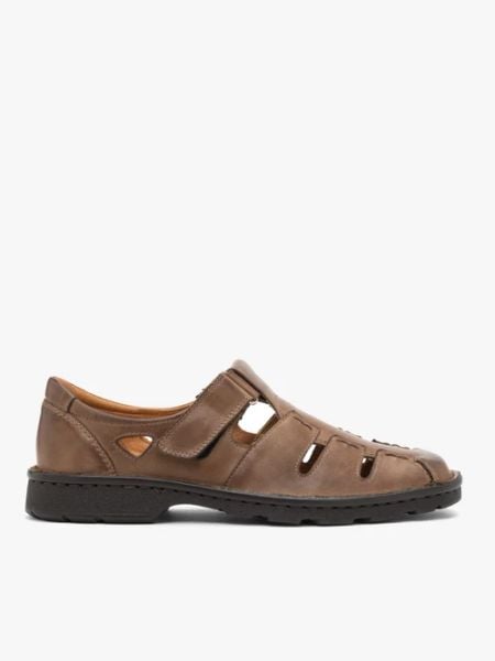 Brązowe Sandały Sportowe ze Skóry Naturalnej z Regulowaną Cholewką i Rzepem Acridana