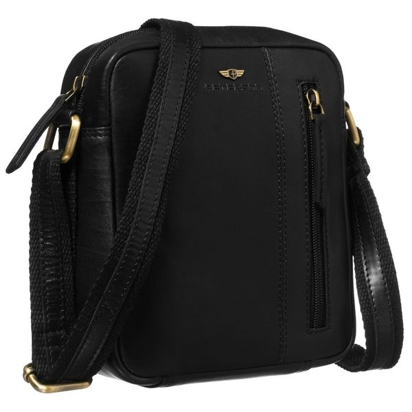 Mała, czarna, skórzana listonoszka męska zamykana suwakiem PTN 1901-TUM Peterson