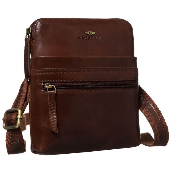 Mała, skórzana listonoszka męska w brązowym kolorze zamykana suwakiem PTN 1901-TUM Peterson