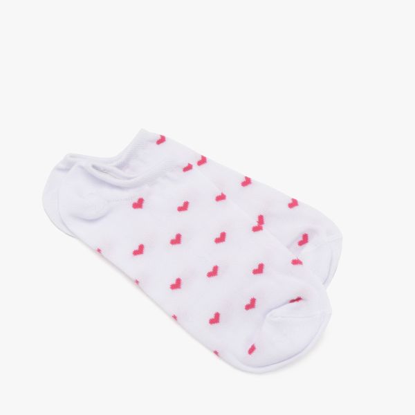 Skarpetki krótkie bawełniane damskie w kolorze białym z wzorem w serduszka.Skład: bawełna certyfikowana Oeko Tex 80%, poliamid 16%, elastan 4%Dystrybutor: Brawo Sp. z o.o. ul. Dworcowa 19, 34-130 Kalwaria Zebrzydowska; [email protected] pochodzenia: POLSKA