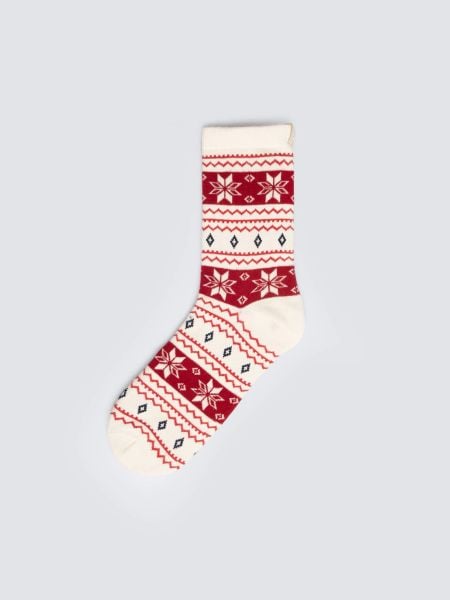 Skarpety damskie długie ze wzorem skandynawskim biało-czerwone Mela 100