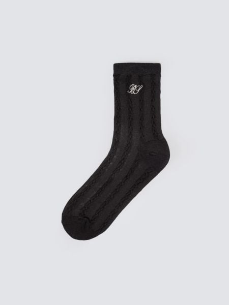 Skarpety damskie z wiskozą z warkoczowym splotem czarne Brajda 906