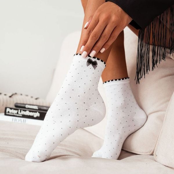 Bawełniane skarpetki damskie w kropki i kokardką w rozmiarze uniwersalnym (36/41)Są stworzone z najwyższej jakości materiału, co daje Ci maksymalny komfort noszenia przez cały dzień!Skarpetki idealnie dopasowują się do kształtu nóg, jednocześniezachowując wyjątkową wytrzymałość.Piękny wzór przyciąga uwagę i dodaje niepowtarzalnego uroku.Są idealne na prezent dla bliskiej osoby. Skład: 75% Bawełna, 20% Poliamid, 5% Elastan