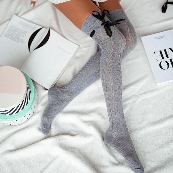 Zakolanówki damskie 215 wstążka j.szary