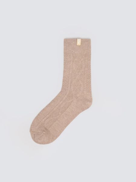 Brązowe skarpetki o warkoczowym splocie z delikatnej w dotyku przędzy wiskozowej z dodatkiem kaszmiru.Na ściagaczu miękka naszywka z logo marki.