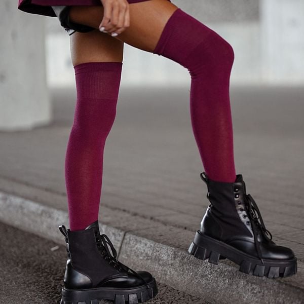 Bordowe zakolanówki gładkie bawełniane 225
