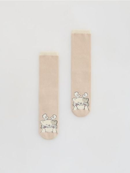 Skarpety ze świątecznym motywem – beżowy