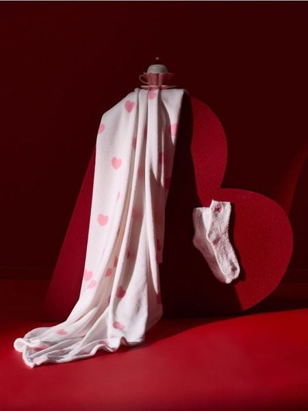 Sinsay – Zestaw: skarpetki i koc w serca – różowy –
